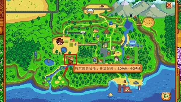 3.那么接下来就要在地图上找到在玛尔妮农场了。位置:自家农场右下侧一点点。