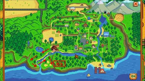 5.从自家农场出发往南走(下面的一条路),然后往右一点点有两座小木桥,走过去。