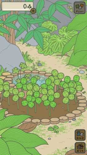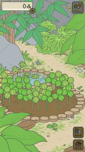 2、我们可以在庭院中看到地里种着很多三叶草,按住屏幕滑动这些三叶草即可收集起来。运气好还有几率收到四叶草,只是概率比较小。三叶草在商城兑换食物,而四叶草可以当做一次性的护身符。