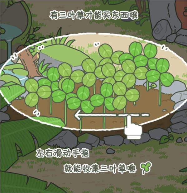 购买便当需要三叶草才行,我们可以在大厅中看到地里种着很多四叶草,按住屏幕滑动这些三叶草即可收集起来。