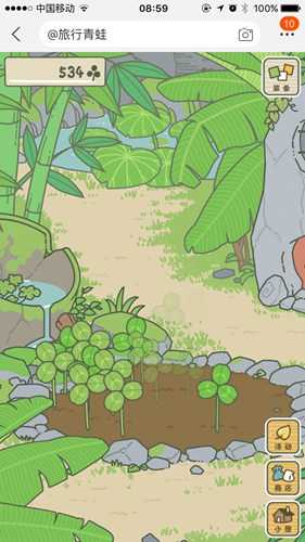 2、庭院采摘,在庭院获得三叶草是最主要的方法,庭院左侧的花坛里会不断产出三叶草,大概四个小时就会长满,一次可以获得大概二十个三叶草,同时还有几率得到幸运四叶草为小青蛙的旅游提高幸运值!