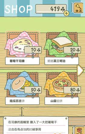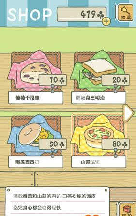 有足够的三叶草后,我们点击屏幕右下角的“商店”按钮,进入商店,可以看到有很多食物便当,用三叶草购买一个便当。由于三叶草数量有限,所以我们第一次只能买第一个10个三叶草的便当。