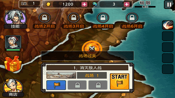 1、普通战役:双剑图标的就是普通战役,目的只有一个,杀光有的敌人。