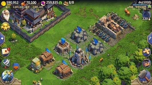军事发展的前提是军事建筑的合理搭建。而军事建筑又分为攻击性和防御性建筑。攻击性建筑有生产部队的兵营,解锁兵种的铁匠铺以及竞技场和帝王陵等,而防御性建筑则有营寨、马厩、箭塔、投石器、指挥所等,强悍的军事力量必然有着攻守兼备的军事建筑。