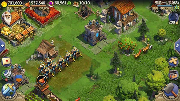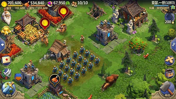 采集时间短,往往在集合了果树、金矿、和大型动物时使用,能够最快速的获取金币和粮食资源,带来文明的快速发展。而铠甲则主要用于联机作战或者全面战争玩法,让资源掠夺更加便利。血量的祝福则是全面战争和玩家下线休息必备的,防止城镇被有效的攻击掠夺。
