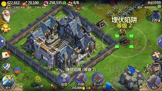这个阶段遇到的防御工事普遍是一个投石器,一个战争堡垒,三个接近满级的箭塔,和两个营寨。当然满级的防御工事还是比未满级的较难打,变数也更多,所以推荐大家优先寻找低等级防御工事的打,毕竟在这个游戏里,兵力可以回收,少损失一个兵就可以节省更多的时间和资源去打下一场战斗。