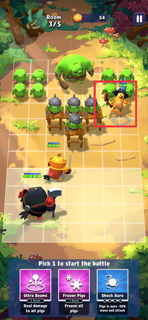 3、每当玩家成功清除一个房间时,你可以在下方三个卡牌中选择一个技能来帮助你战斗,最后成功清除所有敌人即可通过该关卡