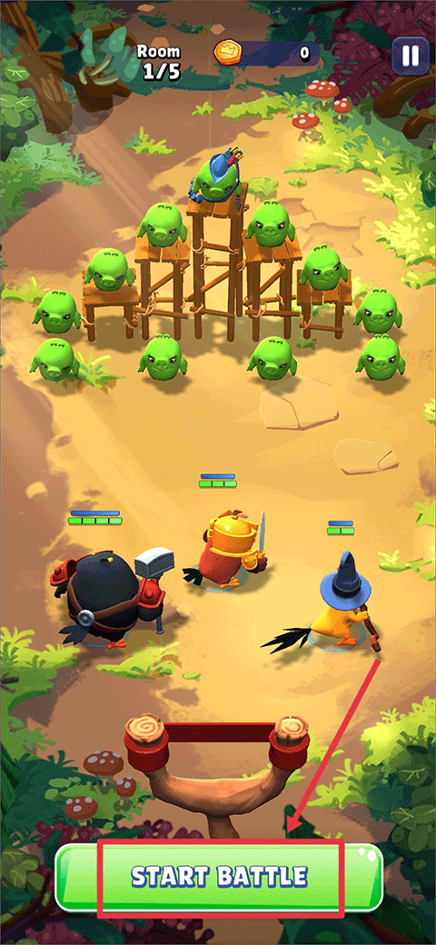 1、进入愤怒的小鸟王国的游戏关卡后,点击START BATTLE即可开始战斗