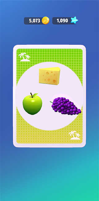 我们先开始难度系数最小的简单级拼图。当我们拼图成功了,就有一个篮子给我们,我们点开那个篮子,篮子里面也有卡片,卡片里也有食物。而且是比较丰厚的食物。下图是小编获取的,有奶酪,苹果和葡萄。