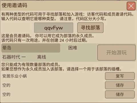 输入好友世界的邀请码可选择单次加入或是永久定居。单次加入需要世界的主人在线,定居则可以随时无条件加入好友世界,每个求生者只能同时在3个世界定居。