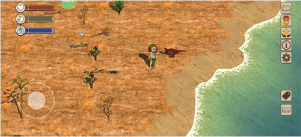 打开右下角标签功能,部分动植物的名称就会显示。名称的背景有灰色和紫色两种。灰色背景道具为一般的道具,可以捡起手持;紫色背景的道具交互后会产生新的道具,如有果实的果树、有蛋的鸟巢都是紫色背景可交互,交互完成后可以得到能食用的果实和蛋。
