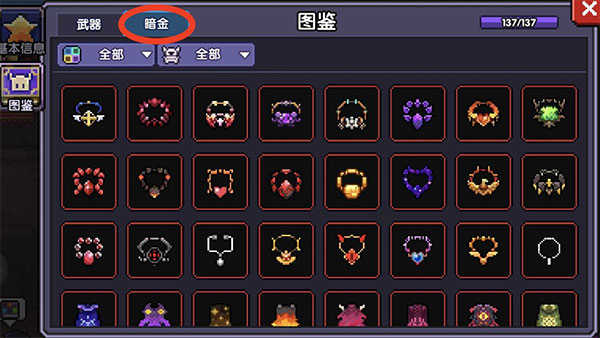 也是在头像左上角的图鉴打开暗金就可以看到所有装备的属性及特性了