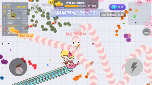 当你的长度足够,就可以在地图上实现以大欺小的虐杀了。你可以把其他小蛇圈在你的肚子里,等他自己撞死,轻松获得击杀和豆豆。