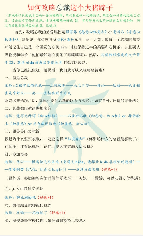 he:绿茶婊或老好人都行.好感二十加(保险).不要献身!(重点)一些选项要选希望对他有感(保险)其他随意