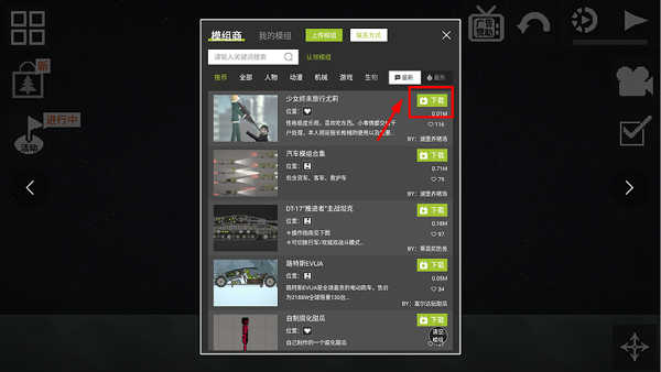 2.找到自己喜欢的模组,点击右侧“下载”(需看30秒广告);