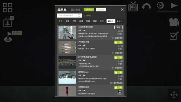 1.打开甜瓜游乐场7723自带模组汉化版,进入后点击左侧菜单下“购物袋按钮”打开模组商店,里面有着超多模组;