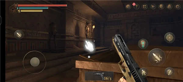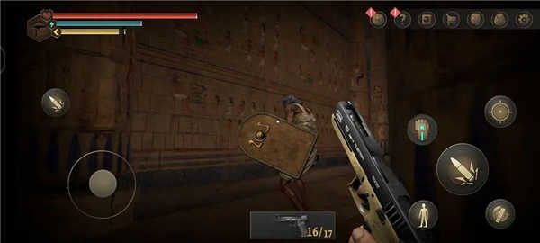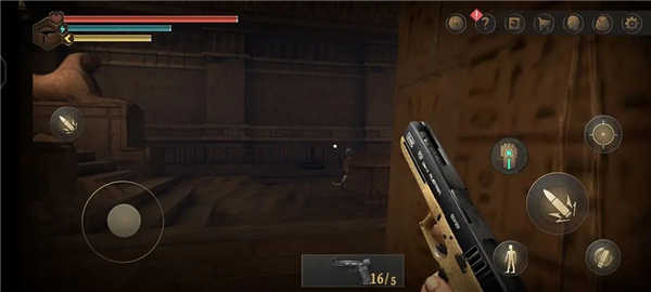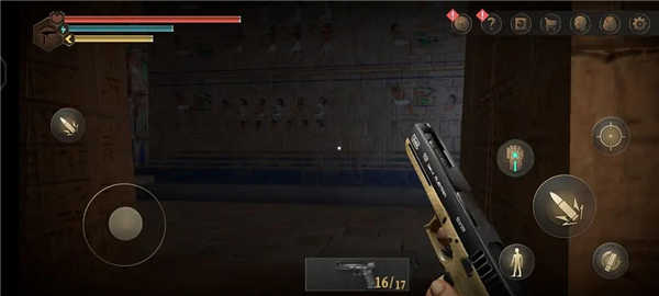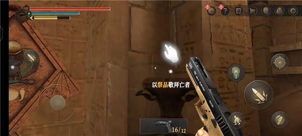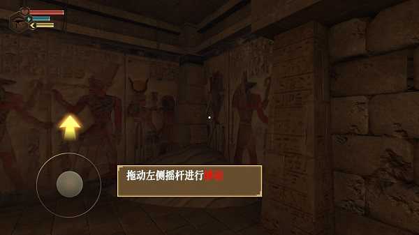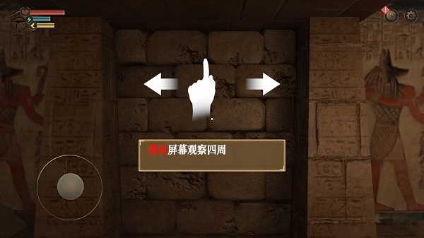 1.游戏开局,将对游戏的背景进行简单描述,当玩家进入金字塔后,真正的玩法正式开始,滑动屏幕观察四周。