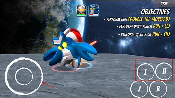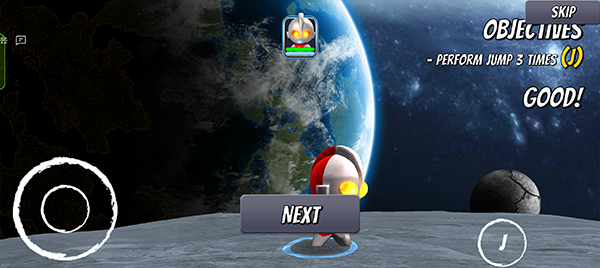 2、“I”按钮可控制奥特曼跳跃到空中对怪兽造成伤害;