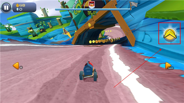 1、进入愤怒的小鸟卡丁车游戏之后,玩家们需要拉动小鸟来开始起步;