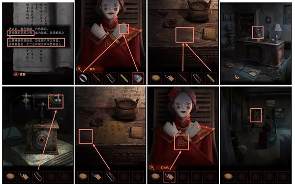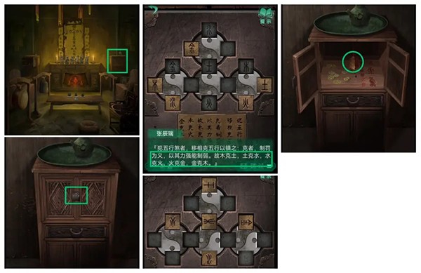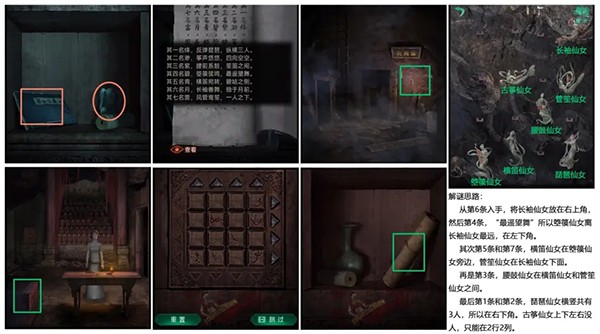 张辰瑞:根据《六转妙法录》,调整好墙上的仙女位置,根据仙女的姿态,解开柜子机关,拿到【线索纸】。