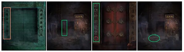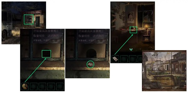 48、根据拼图线索,解开右边拼图机关,拿到【咒符】,从张辰瑞手里拿到另一张【咒符】,离开屋子走出院门。