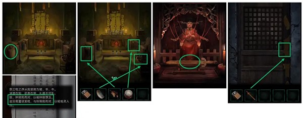 31、拿到【猪头雕像】和【羊头雕像】,根据《告祖祭文》的提示,将三个【X头雕像】放在正确的位置上。