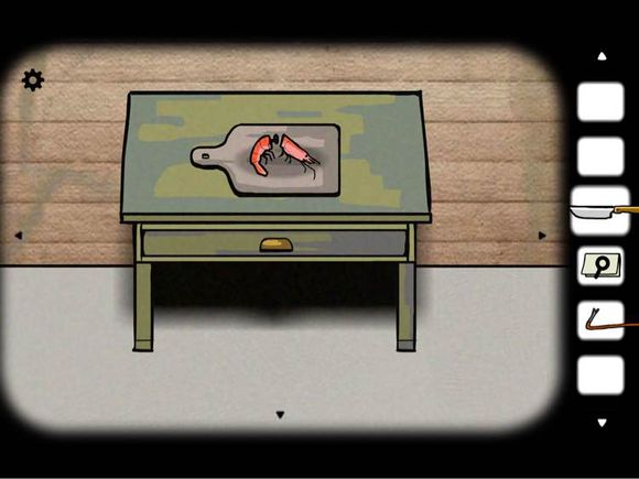 7、钓上来一只虾。放在砧板上,用刀剁成两半。拿到一把钥匙。