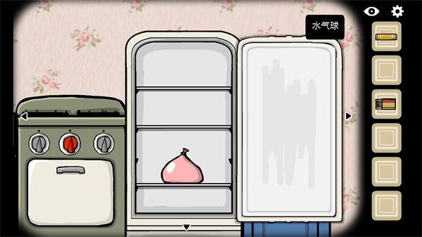 4、先拿地上的气球,将场景切换到厨房并在水池下面拿到火柴。