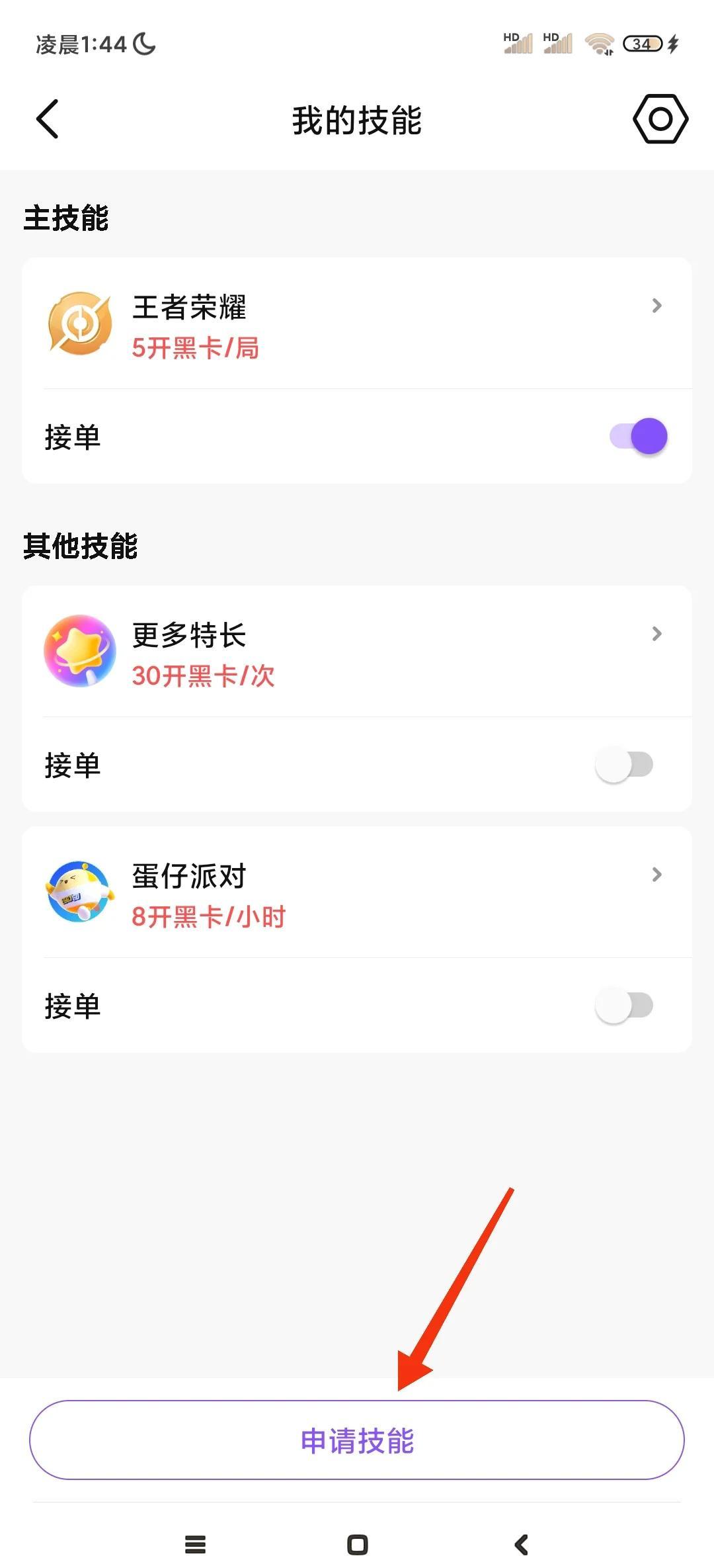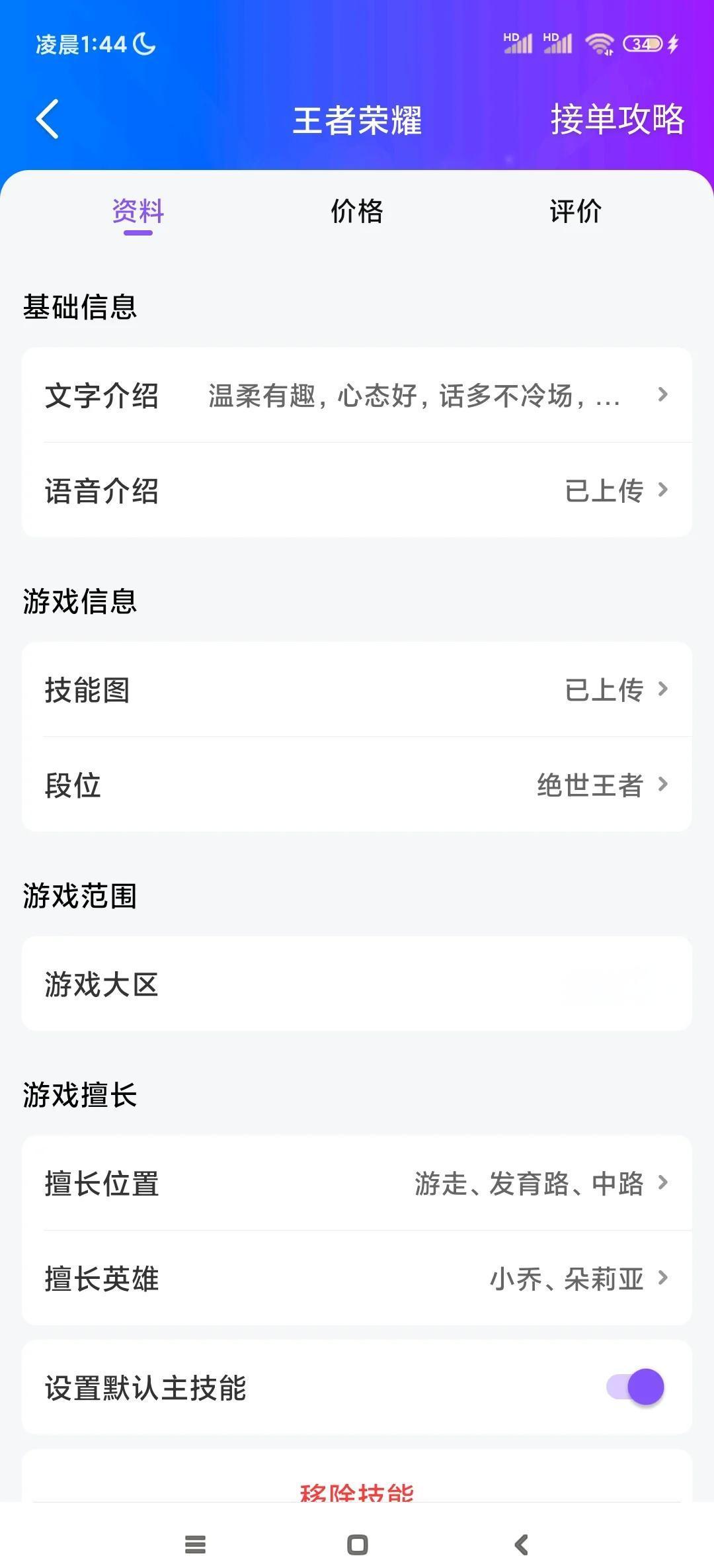 4、选择你要申请的游戏技能(以王者荣耀为例),女生需要星耀以上段位才能申请,男生我就不太清楚了。填写好个人信息。