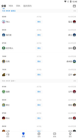 2、切换到【赛程】页之后,就能预约比赛直播或者收看比赛回放。