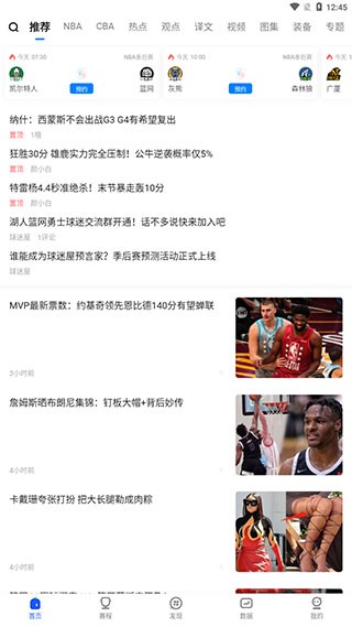 1、下载球迷屋app,进入软件【首页】之后,我们就能在这里浏览各类篮球体育的资讯。
