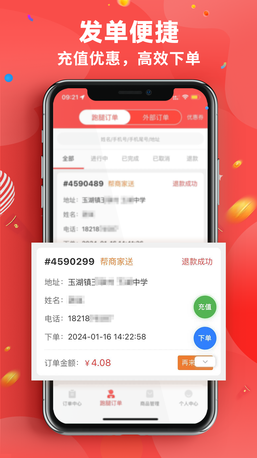 2、[订单管理]随时随地接单,处理和操作订单。