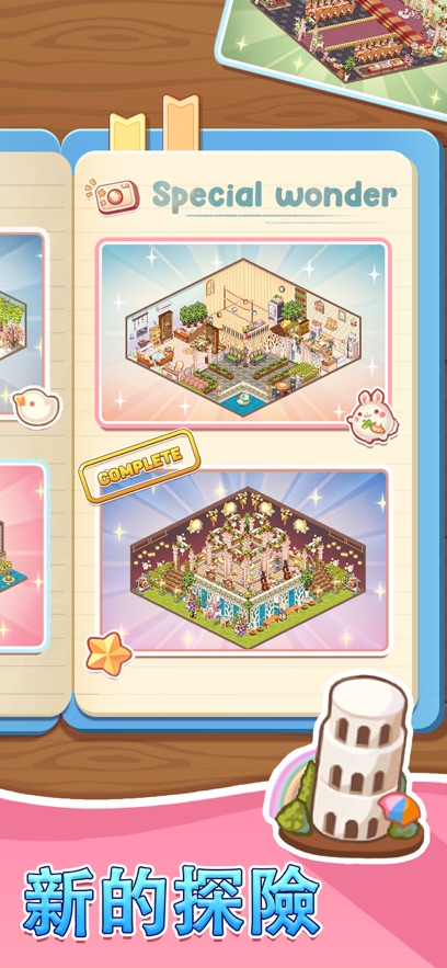 我的袖珍世界是玩法简单上头的拼装模拟游戏啦,游戏玩法以拼图组装为主,每一个场景都像是微缩模型的世界,玩家只需轻点几下,就能亲手把一个个复杂又可爱的建筑、房间、场景搭建出来。你可以随心布置自己的空间,建个温馨的小木屋,或是搞一场梦幻婚礼布景,甚至把森林打造成童话茶话会的现场都不是问题。我的袖珍世界更有各种风格的家具、灯饰和装饰可以混搭,每一关完成后还有小小故事等待你来解锁。