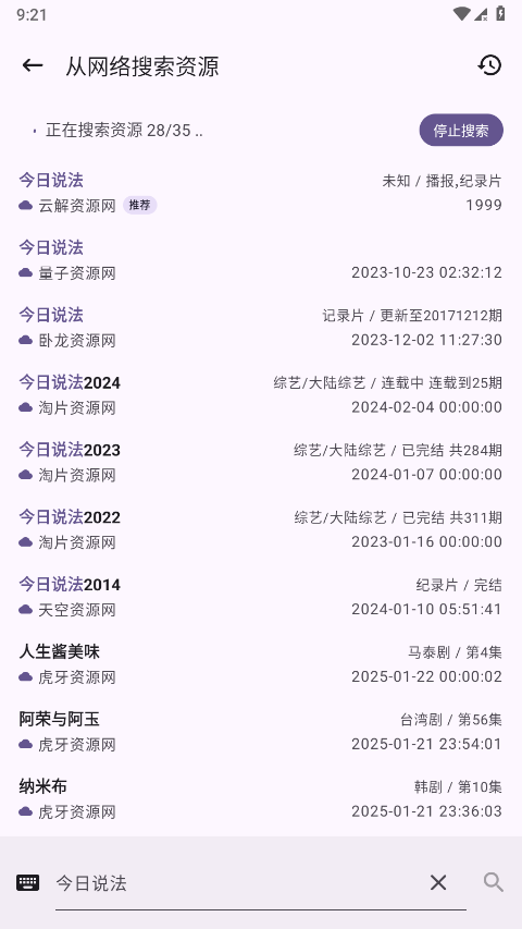 3. 点击选择的影片资源后,会出现多个搜索资源渠道。