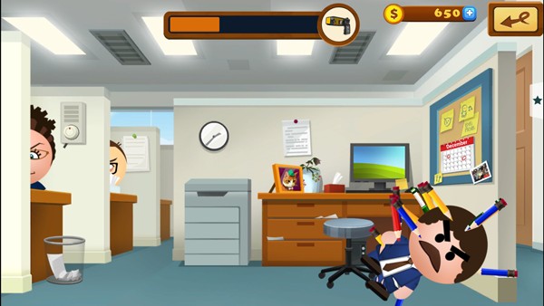 1、操作方式简洁明了,只需点击即可用各种工具暴击老板。