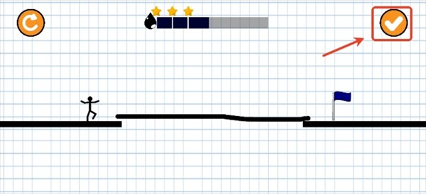 3、玩家绘制完成后,点击屏幕右上角的对钩,使火柴人开始行动。