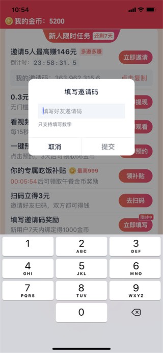 2、来到赚钱界面,找到“填写邀请码奖励”;