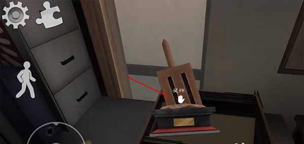 35、去接待室,按照雕像箭头指的方向,在墙上、照片背面或者雕像背面等地方,寻找数字密码,并记住顺序,如果没有找到4个数字,可以试着去箭头雕像的反方向找一找。
