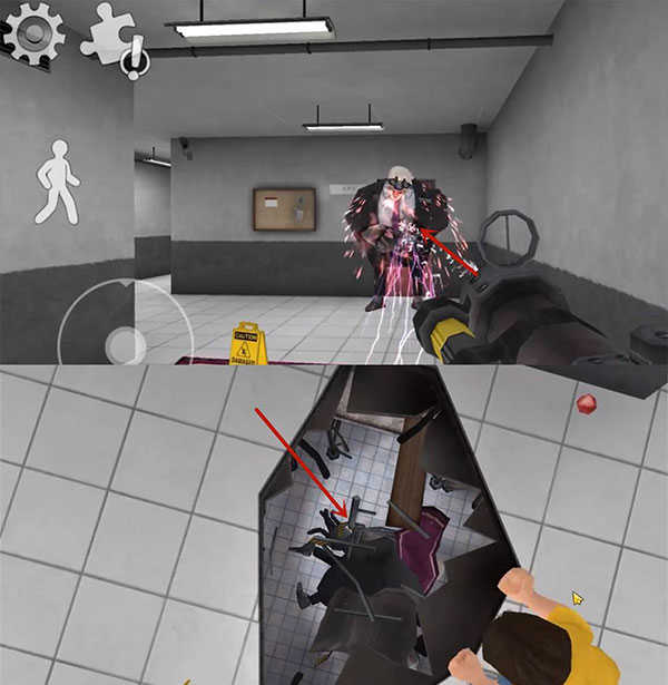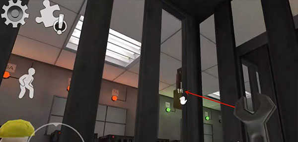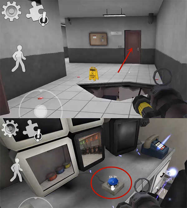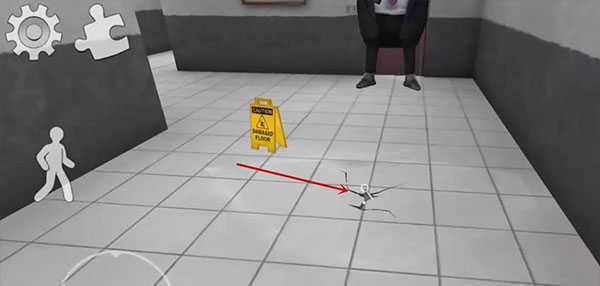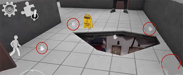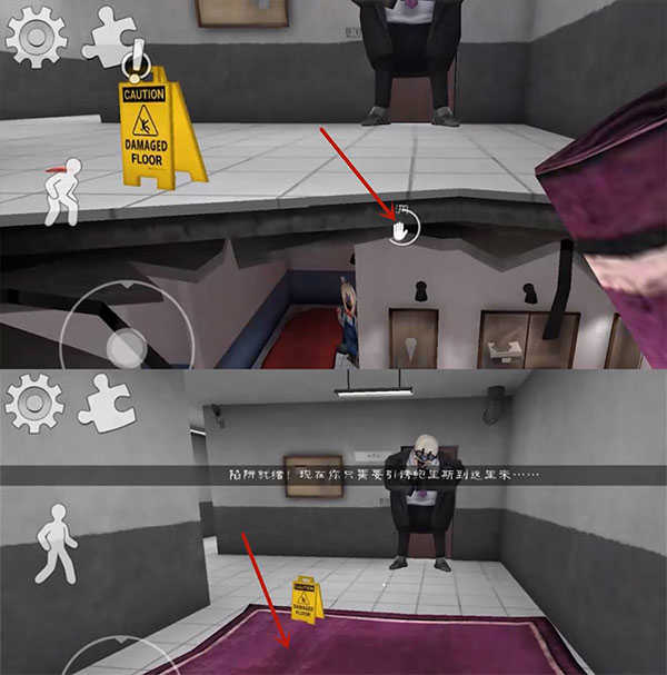 2、玩家需要使用地图中道具逃离这里,点击右边"手"拾取道具,点左边人图标可以下蹲;