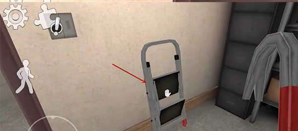 16、进入储藏室,在门旁边拿到梯子。