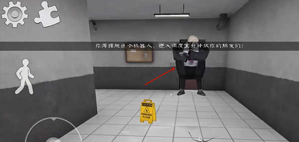 6、打开门看到机器人,我们最终目的就是要引走这个机器人,进入调度室。