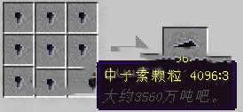 9个颗粒可以合成一个中子锭 (一个中子锭要用到81个尘埃 需要405分钟 即大约6.75小时)可以用更多的收集器来生成更多的尘埃