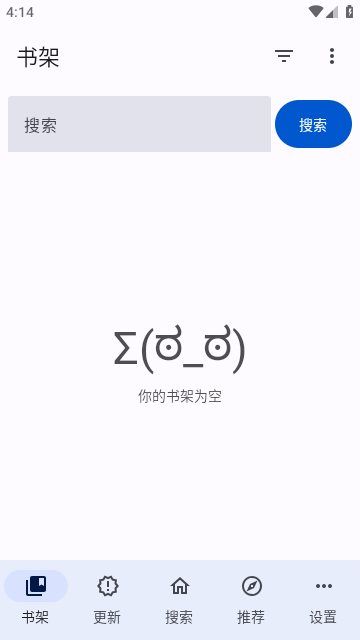 2、完成阅读后,可发现【书架】、【更新】等分类。