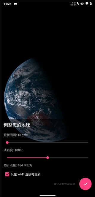 2.设置桌面壁纸的更新频率与清晰度,壁纸将会根据卫星返回的影响不断产生变化