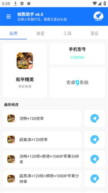 3、根据自己的设备和游戏版本选择画质修改帧率,提高你的游戏画质的品质。
