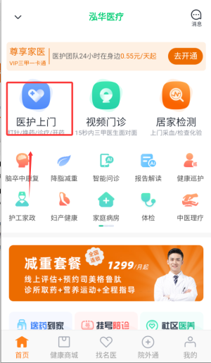 2、也可以通过app在线预约医生上门帮助自己诊断,或是上门输液,打针等。