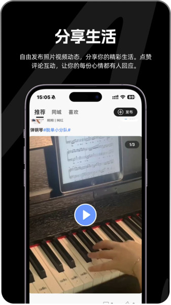 发布图文/短视频,点赞评论互动,支持高清写真集展示