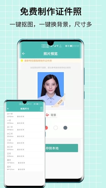 - 免费制作证件照:简单几步,即可完成证件照制作。