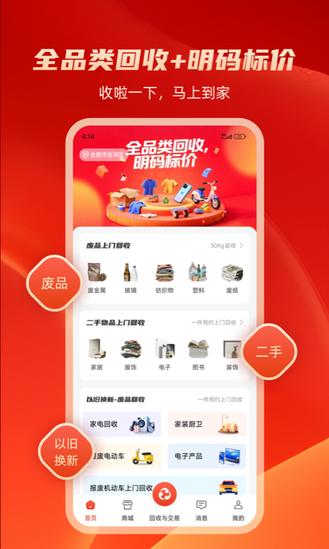 1、回收分类:支持金属、塑料、纸品、电子产品等多类物品回收。