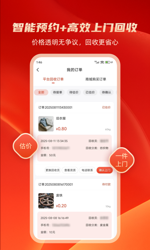 3、一键下单:用户可在线发布回收订单,快速响应。